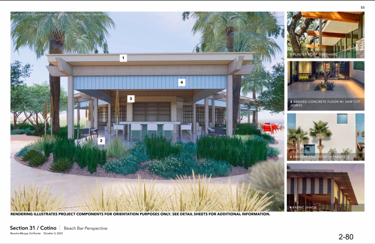 Disney Cotino Construction UpdateDisney has submitted new documents to the city of Rancho Mirage, detailing the Clubhouse, the Parr House, and development of the first restaurant! These plans are full of some incredible renderings that you can see at the end of this email. The documents linked below are very long, so I have included the most important excerpts from the planning documents below.     Excerpts from the Developer: "The proposed Project is a request to construct a Clubhouse Campus and "Parr House" on approximately 8.3 acres in Planning Area 1 within the Section 31 Specific Plan area. The Clubhouse Campus Square serves as an amenity for club members and consists of 8 single-story buildings totaling 18,600 square feet of interior space: the lobby, restaurant, beach bar, studio/locker rooms, fitness center, creativity center, water sports rental center, and pool equipment storage. The project also proposes site amenities, such as two bocce ball courts, two tennis courts, six pickleball courts, a lap pool, spas, event lawn areas, and areas for overflow parking and future expansion of sports courts. The Parr House is a 5,577 square-foot two-story residence with a 552 square-foot detached garage intended as an additional amenity for private club members and their families and guests. The Parr House will be located on a 25,690 square-foot lot adjacent to the Clubhouse Campus."  Clubhouse Membership and Hours "The clubhouse will be available to Cotino residents, and a limited number of non-residents, that join the private clubhouse membership program.  The clubhouse is expected to be open for member use from 6:00AM to 10:00PM, 6 days per week and vary during ramp-up periods and seasonality. Lagoon lifeguards will be on duty during beach operating hours with roaming security guards present on side during off-hours."  Town Center North Restaurant "A two-story waterfront destination for the Cotino Town Center. The building has multiple functions as a main restaurant accessible from the village/town center level and as a beach-level amenity and support building for the public beach patrons and beach staff. The main level is a waterfront restaurant overlooking the lagoon and beach."  Please watch my latest YouTube video all about the Town Center!  Disney Cotino Community Renderings |